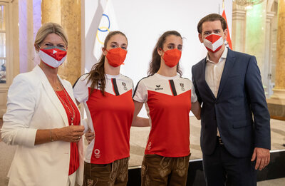 Für einen Teil des 75-köpfigen Olympic Team Austria führte der Weg zu den Olympischen Spielen am Donnerstag noch in die Hofburg zur traditionellen Verabschiedung bei Bundespräsident Alexander Van der Bellen. Pro Verband waren wegen der strengen Corona-Regeln nur zwei Personen zugelassen. Der Österreichischen Schwimmverband war mit den Synchronschwimmerinnen Anna-Maria und Eirini Alexandri in der Hofburg vertreten.