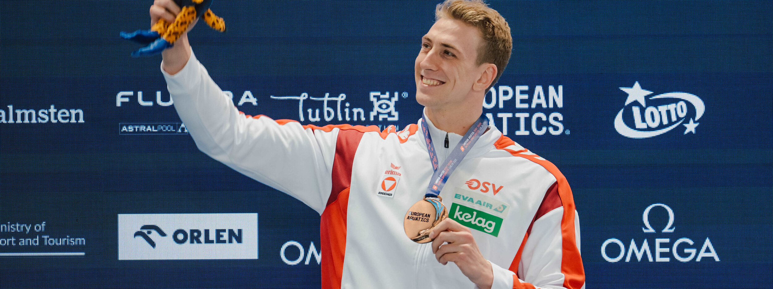 Nach Bronze von Luka Mladenovic über 100 Brust gewinnt Österreich die zweite Medaille bei der Kurzbahn-EM in Lublin. Heiko Gigler holte in einem packenden und sehr engen Rennen in 51,60 Bronze über 100 Lagen. Für Gigler ist es eine höchst emotionale Medaille, denn es ist in seiner langen Karriere seine erste Einzel-Medaille bei einem Großevent, nachdem er trotz vieler Finalteilnahmen oft nur auf den Rängen platziert war und das Nachsehen hatte. Luka Mladenovic holte in 51,63 diesmal „nur“ Rang vier, zeigte aber einmal mehr sein großes Potential. Auch danach im Semifinale über 200 Brust, wo er als Vierter in 2:03,42 mit neuem Ö-Rekord in seine drittes EM-Finale in Lublin einzog. Das schaffte auch Simon Bucher über 100 Schmetterling. Der Tiroler belegte im Semifinale über 100 Schmetterling in 49,92 Rang fünf. Lukas Edl (13.) schied aus. Die EM-Vorläufe beginnen um 10.00 Uhr, die Finalläufe um 19.00 Uhr. LIVE-Bilder gibt es auf EUROVISIONSPORT.