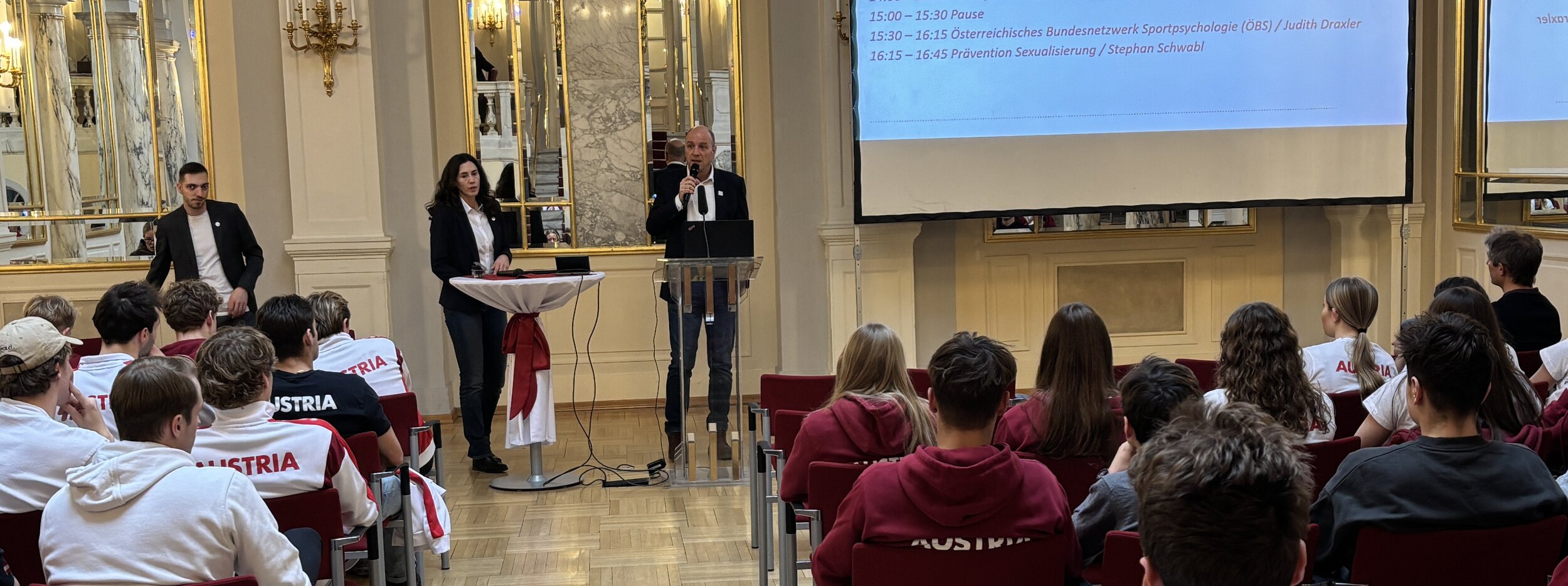 Beim Summit 2026 im Haus des Sports bekamen die rund 100 anwesenden AthletInnen Vorträge der NADA (Nationale Anti Doping Agentur), der KADA (Institution für Bildungs- & Berufsberatung im österreichischen Spitzensport), dem ÖBS (österreichisches Bundesnetzwerk Sportpsychologie) und auch einen Vortrag zum Thema Prävention zur Sexualisierung im Netz präsentiert. Ein Faktum, das durch die intensive Nutzung der Social-Media-Kanäle in den vergangenen Jahren zu einem sehr großen Problem geworden ist. Entsprechend wichtig war der Vortrag vor allem für die Nachwuchskader, die in den kommenden Jahren immer mehr in den Fokus der Öffentlichkeit rücken und sehr sorgsam vor allem mit der Veröffentlichung von Bildern und auch anderen Inhalten umgehen müssen.