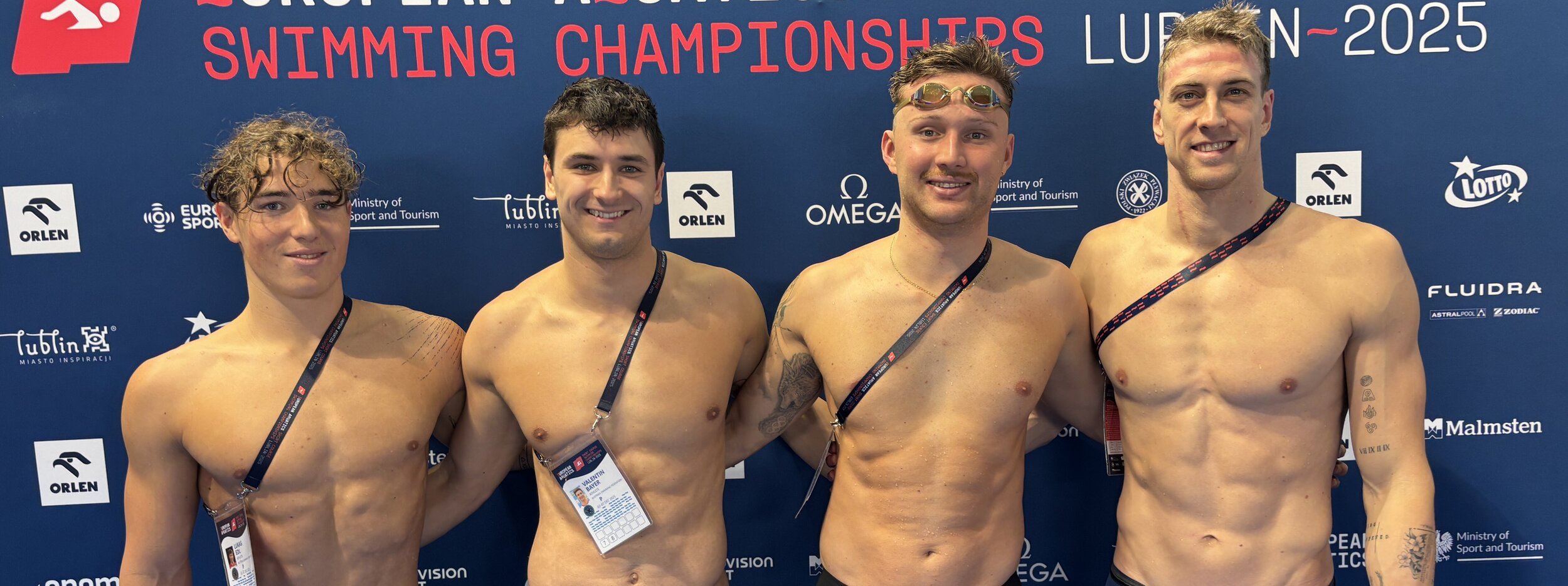 Die Lagen-Staffel des OSV hat 2022 in Rom EM-Bronze gewonnen und 2024 in Belgrad EM-Gold. Hier könnte es die nächste Medaille geben. Die Chance ist sehr groß. Simon Bucher: „Es ist extrem knapp. Auf eine Medaille hat glaube ich jeder eine Chance. Da ist wirklich alles drinnen.“ Auch für Heiko Gigler: „Bei der Staffel gibt es sowieso nur Vollgas. Wir haben das am Vormittag schon mal ganz gut gemeistert.“ Lukas Edl sieht für sich als Startschwimmer noch Verbesserungspotential: „Es hat schon mal ganz gut gepasst, aber da kann ich schon noch ein paar Sachen verbessern.“ So sieht das auch Valentin Bayer auf seiner Bruststrecke: „Die ersten fünf sind drei Zehntel beisammen. Das ist eine echt knappe Kiste. Ich war mit meinem Rennen eher nicht zufrieden. Das sollte noch was gehen.“