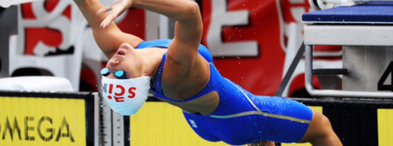 100 m Rücken Emma Gschwenter (1.05.43) und Bernhard Reitshammer (0:56,16)