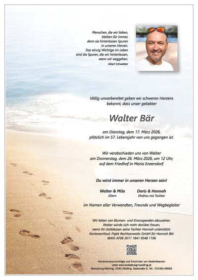 OSV-Sportdirektor Walter Bär wird am 26. März um 12:00 Uhr auf dem Friedhof in Maria Enzersdorf verabschiedet.